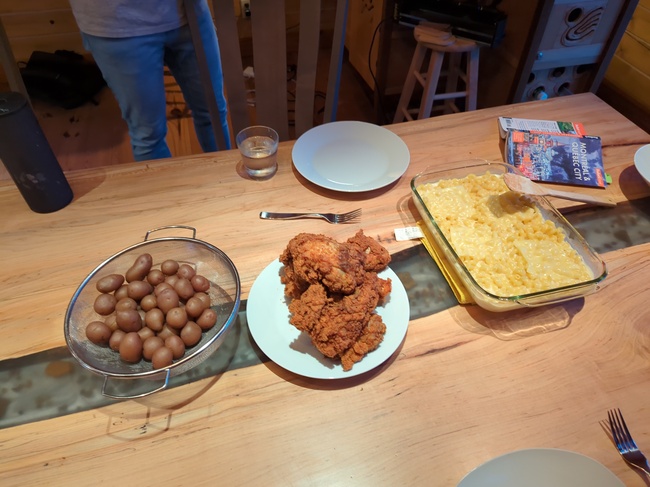 A quick lethal dose of Mac n' Cheese with fried chicken before the trip.