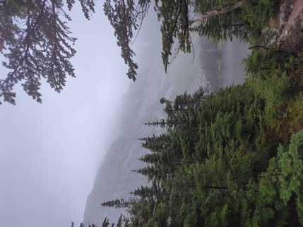 Despite the tranquility, the conditions were anything but. Freezing rain had set in and soaked through our clothes and partially flooded the trails. I especially was underprepared, with only a single 500mL bottle to my name. Despearate, I drank from the nearby pond on the way up without a filter; without it, I would not have been successful in my climb.