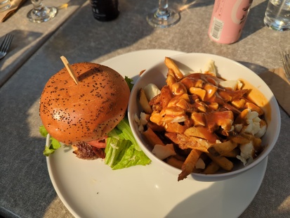 Tranquil streets paired with the beautiful sun and le Poutine.